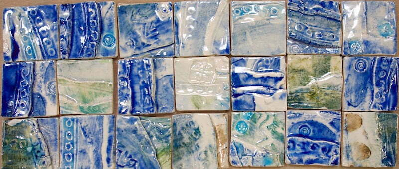Blue handmade 2″ clay tiles
