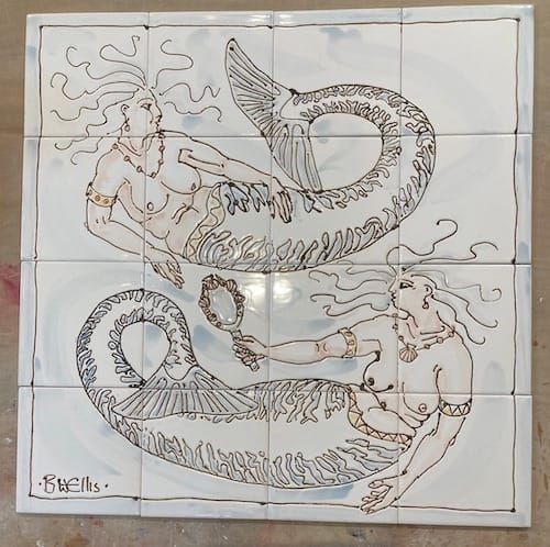 February 10, 2026 500 × 498 Middle aged mermaid s bathroom hand made tile panel Middle aged mermaid s bathroom hand made tile panel