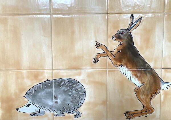 Hare and hedgehog kitchen tiles.
